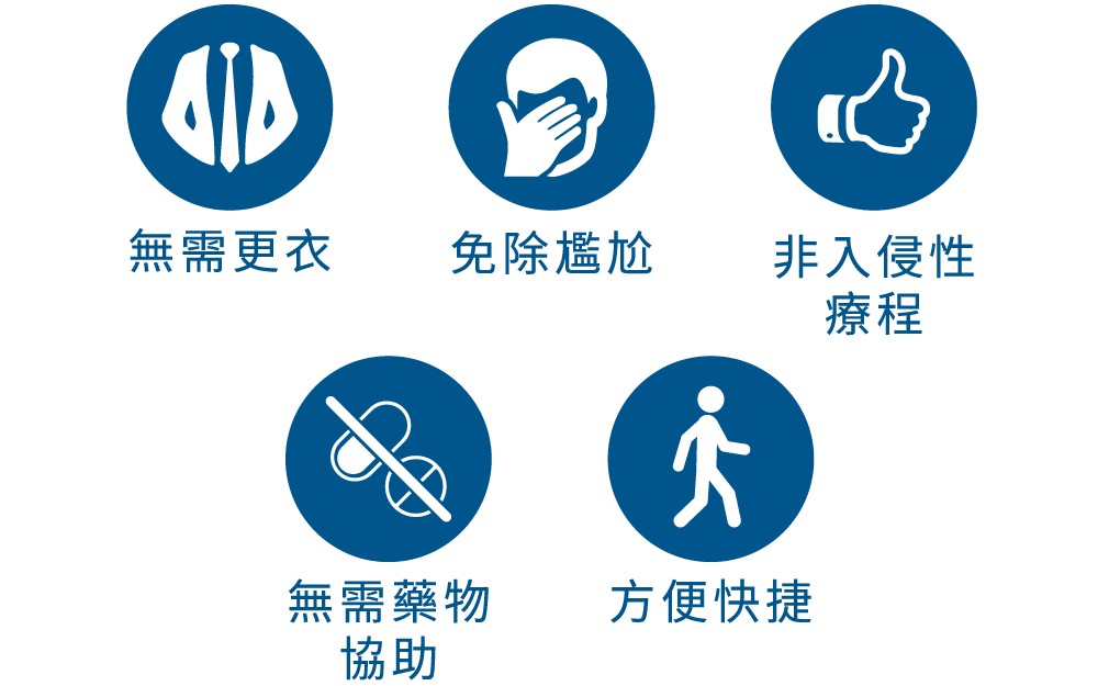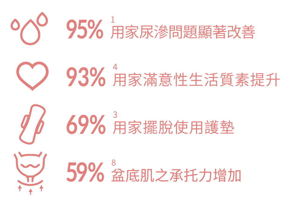 Emsella™療程,以無創傷性的專利的HIFEM技術,為盆底肌肉進行過萬次肌肉運動,在運動過程中,肌肉的收縮,有助改善盆腔的血液循環,增強其收縮能力,激活下盆底肌肉組織膠原蛋白再生,強化及拉緊盆底肌肉,及早鍛鍊更加可以預防盆底肌鬆弛,從而預防盆腔器官脫垂等問題。