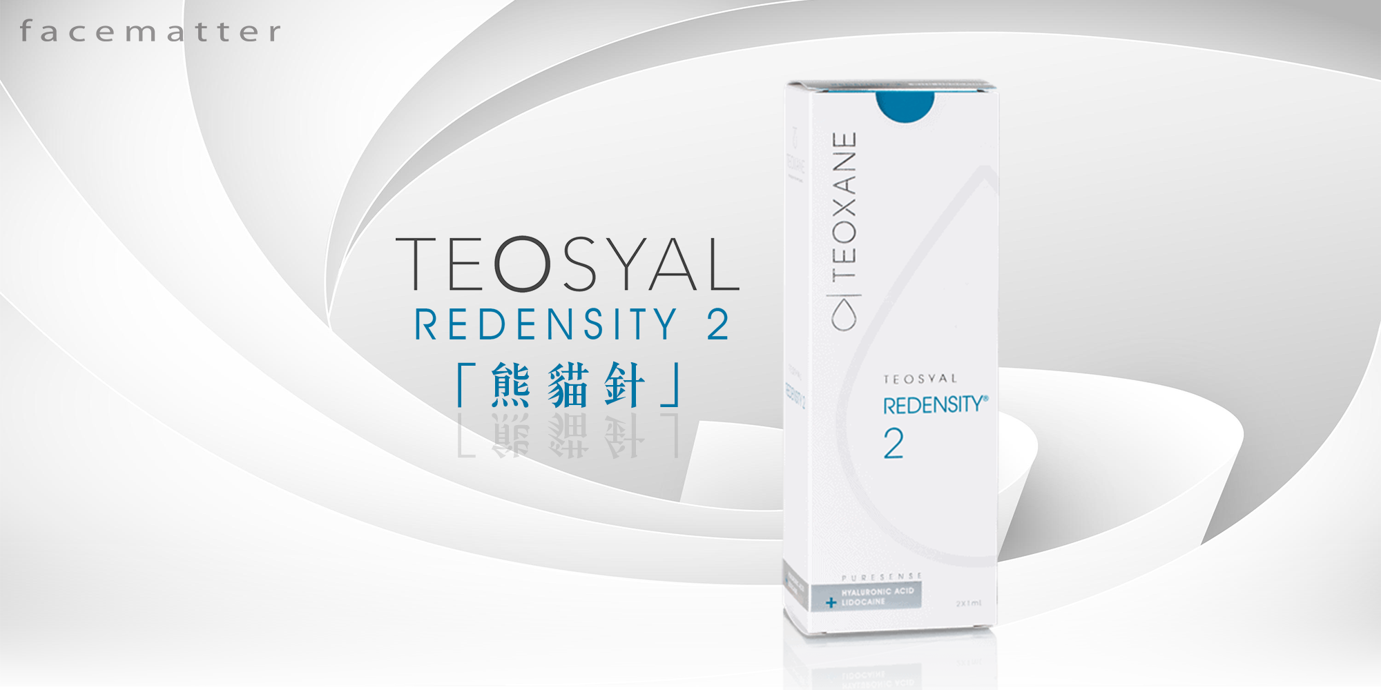 Teosyal Redensity 2 “熊貓針” 是透明質酸補濕針,成份包括透明質酸及重組真皮複合物﹝8種氨基酸、3抗氧化物、2種礦物質及維他命B6﹞,當透明質酸進入皮膚後會與皮膚中的水份結合,可保濕,提升皮膚彈性,刺激膠原蛋白增生及改善細紋。另外配合重組真皮複合物,有效提升皮膚的抗氧化保護、保濕度及光澤,改善整體皮膚質素。